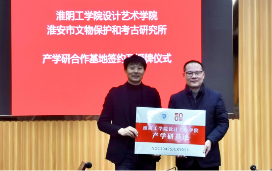 当日,双方正式签订产学研合作基地建设协议,举行了授牌仪式。张光祥代表设计艺术学院聘请胡兵为我院兼职教授、并颁发评书。于文龙、尹国军和邓佰林等教师就双方单位前期合作项目《淮安区庆城门遗址数字化保护与复原》《淮安区庆城门遗址考古宣传片》做了成果汇报。