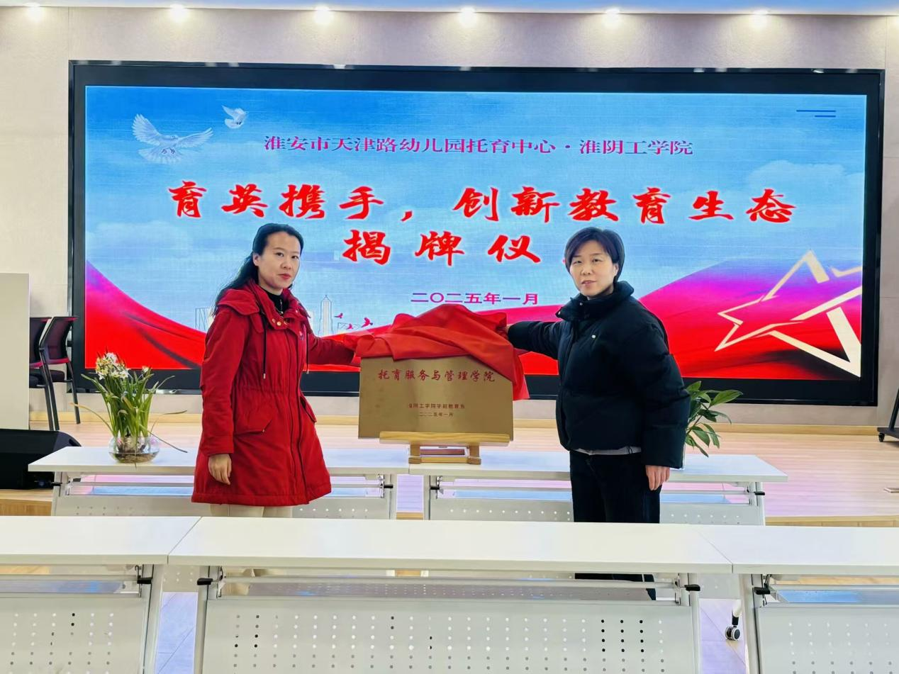 为响应国家关于加强学前教育质量、促进教育资源优化配置的号召,进一步整合我校学前教育系与淮安市天津路幼儿园托育中心的优势资源,促进“高校+幼儿园”的深度融合。2025年1月17日,在天津路幼儿园托育中心举行了淮阴工学院学前教育系与淮安市天津路幼儿园托育中心共建协议签约、淮阴工学院托育服务与管理学院揭牌仪式。参加此次活动的有淮阴工学院学前教育系主任杜鸿琳、淮安市天津路幼儿园园长曹艳以及双方教师代表。