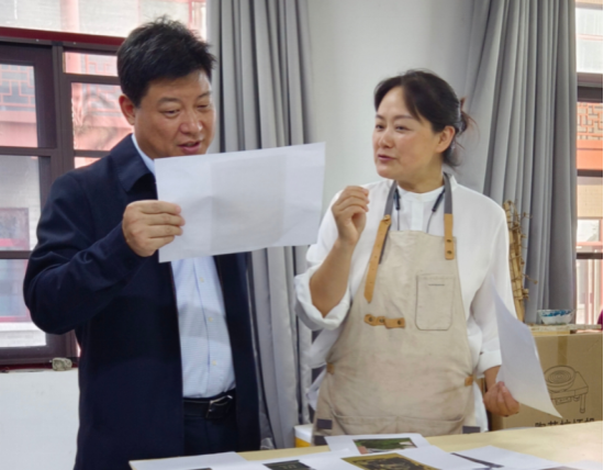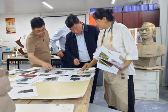 随后,邱华康一行到访淮阴工学院统战名师工作室,与工作室负责人汤海英老师亲切交流,对汤老师塑造的《孙中山先生肖像》进行审稿。据悉,即将完成的孙中山塑像将安放于全国百佳统战阵地——淮安民革中山博爱之家。
