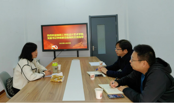 陈卫东代表学院对李晓慧的到来表示热烈欢迎和衷心感谢。他详细介绍了学院整体情况、专业设置、学科建设、研究团队和特色优势。他表示,淮阴工学院设计艺术学院与苏州科技大学艺术学院有着深厚的渊源,在视觉传达设计、数字媒体艺术、环境设计等专业有较高的契合度,他希望此次座谈交流为契机,进一步拓宽双方交流合作渠道,推动学院在人才培养、学科建设、党建共建联建等方面深度对接。