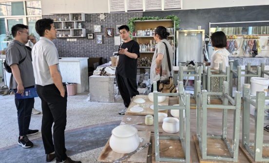 座谈会后,我院一行在曾英院长等人的陪同下参观了该院布艺玩具工坊、木艺工坊、陶艺工坊、数字雕刻室、美育教育研究室和科研工作室。