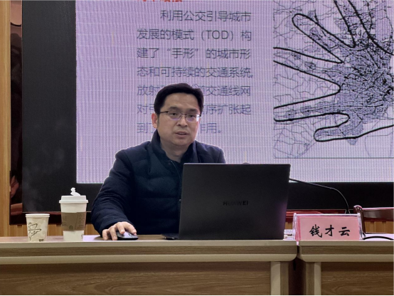 钱教授结合自身研究与实践,从公共交通碳排放背景出发阐释TOD理论,提出城市空间与交通设计方法应从“以车为本”逐渐转变为“以人为本”模式,设计出城市公共交通层级体系,并举例验证了该理论的可行性。并以南京河西与栖霞区为例,基于城市有轨电车与其他交通方式的差异性,对其城市空间可达度进行测试分析,得出友好型城市空间营建的实证研究结论。钱教授的讲座积极回应了当前城市建设中的热点议题,在研究视角、理论、方法等方面对学院师生有很大启发。