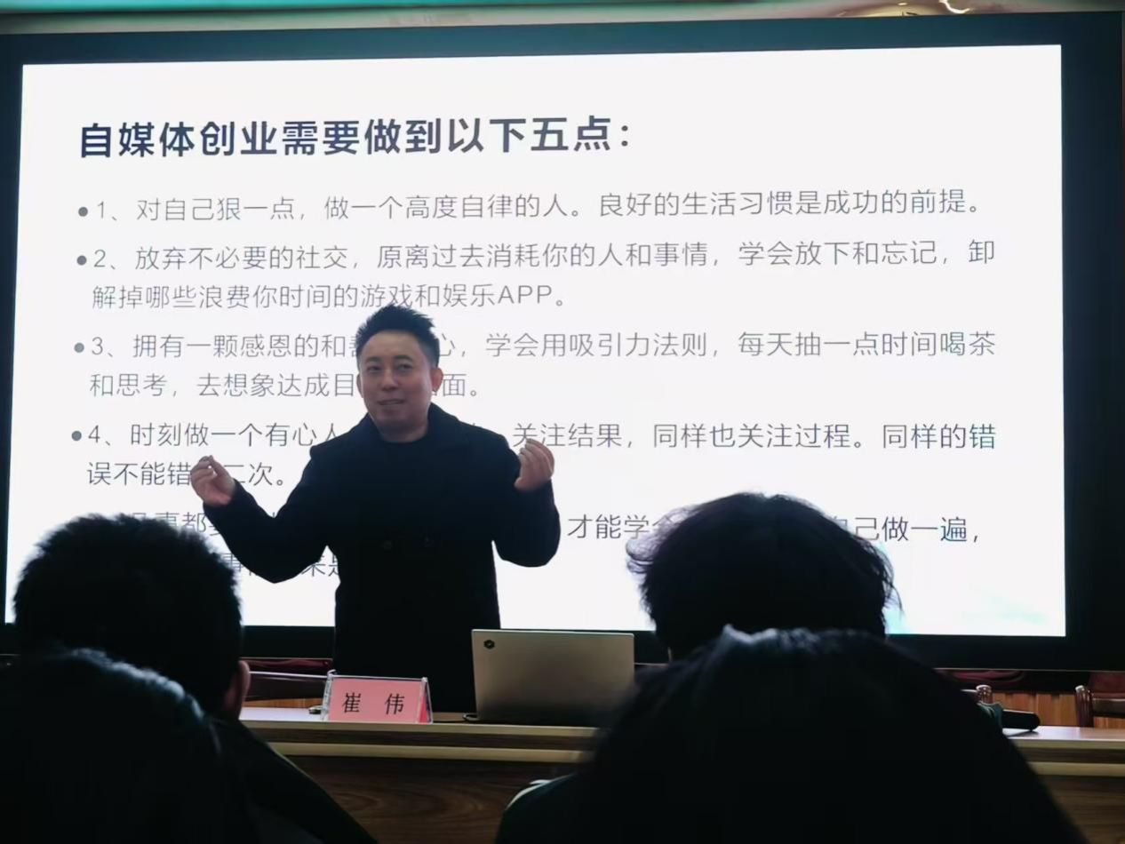 崔伟还强调当前是自媒体与流量主导的轻创业时代,普通人都可通过创业抓住机遇。他鼓励新时代青年应善用自媒体和流量红利,以低门槛创业模式突破传统限制,主动适应时代趋势,挖掘个人优势,快速行动并持续优化内容,方能在竞争中获得立足之地。